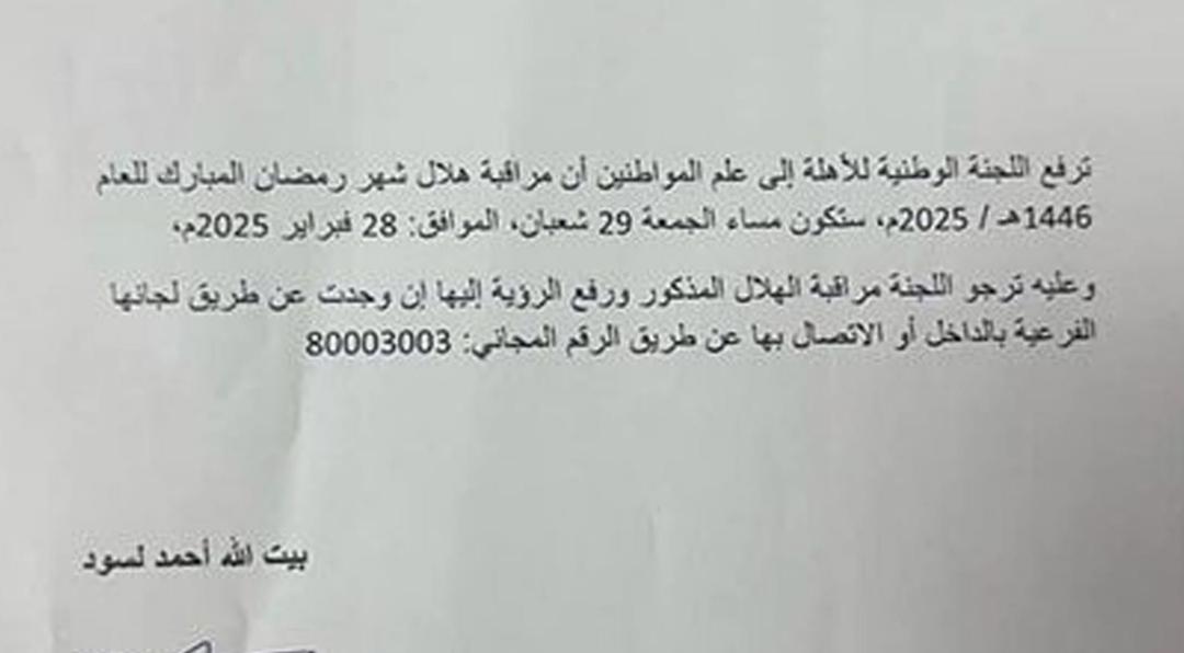 لجنة الأهلة تدعو إلى تحري رؤية شهر رمضان مساء غد الجمعة