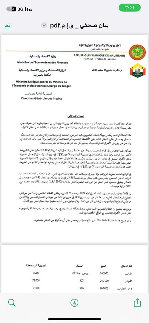 المديرية العامة للضرائب: المزاعم المتعلقة بارتفاع معدل ضريبة دخل الأفراد غير دقيقة