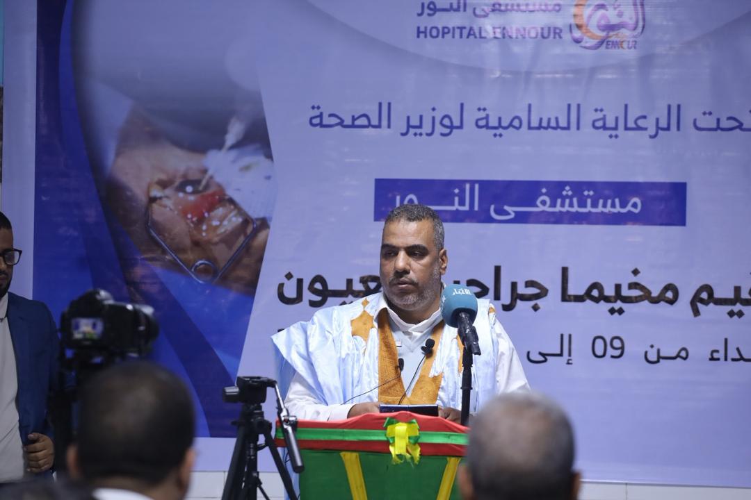 وتم افتتاح الحفل وفق إيجاز رسمي من طرف عمدة بلدية توجونين أحمد سالم ولد الفيلالي و الدكتور اعل ولد اميده المكلف بمهمة لدى وزير الصحة المنتدب من طرف وزير الصحة لافتتاح المخيم و المدير الجهوى للصحة بانواكشوط الشمالية الدكتور محمد سعيد ولد المجتبي و الطبيب الرئيسي لمقاطعة توجونين الحسن جاكيتي و جراحين وأطباء وحضور إعلامي.