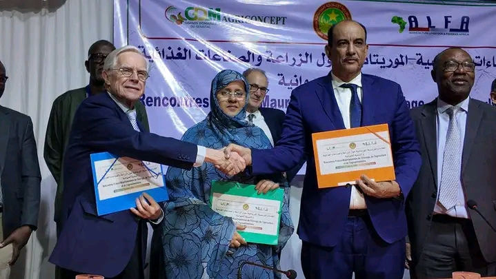 وقع مساء الثلاثاء، على هامش اللقاءات الموريتانية الفرنسية حول الزراعة والصناعات الغذائية والتنمية الحيوانية والصناعات الغذائية، توقيع مذكرة تفاهم ثلاثية بين كل من الشركة الوطنية للتنمية الريفية "صونادير"، والموريتانية للمنتجات الحيوانية ومجموعة ألفا الفرنسية، وذلك في إطار تعزيز التعاون المشترك بين موريتانيا وفرنسا من أجل تطوير قطاعات الزراعة والتنمية الحيوانية، والصناعات الغذائية.