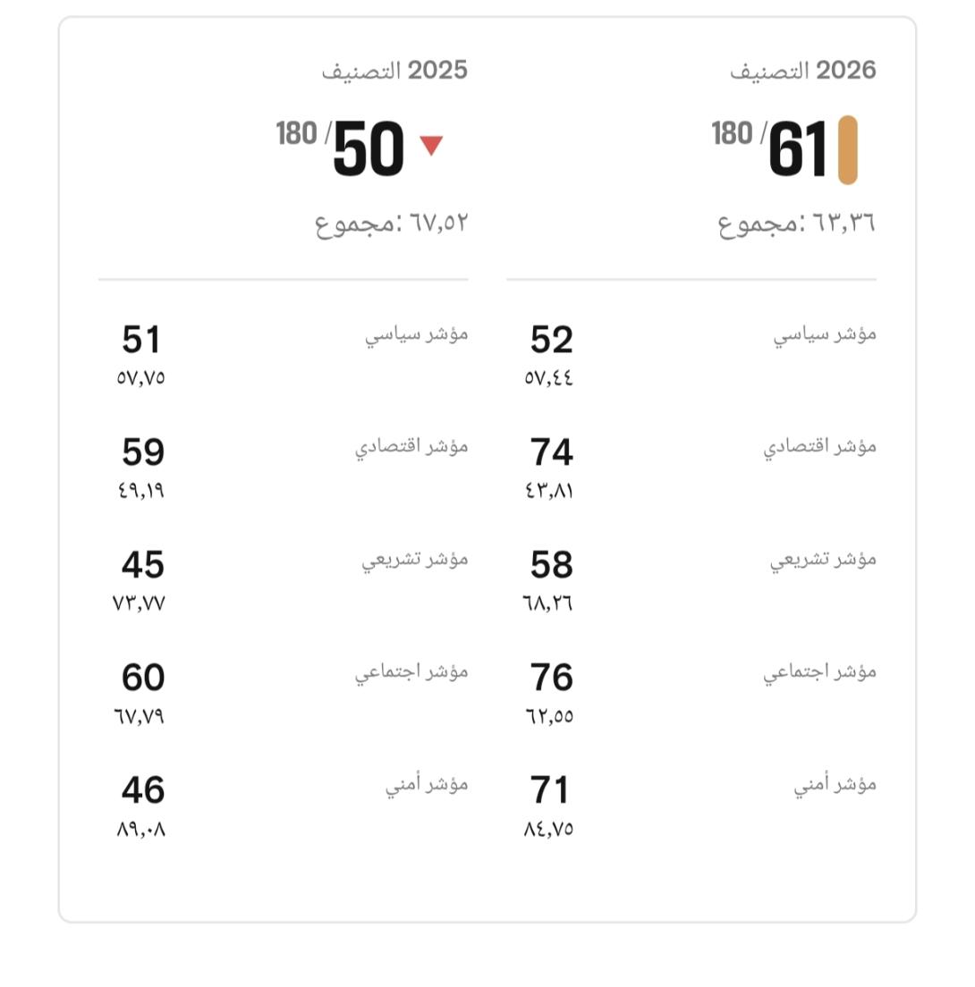 ووفق التقرير الصادر فجر اليوم الخميس، فقد تراجعت موريتانيا بـ11 مركزا مقارنة بتصنيف العام الماضي.